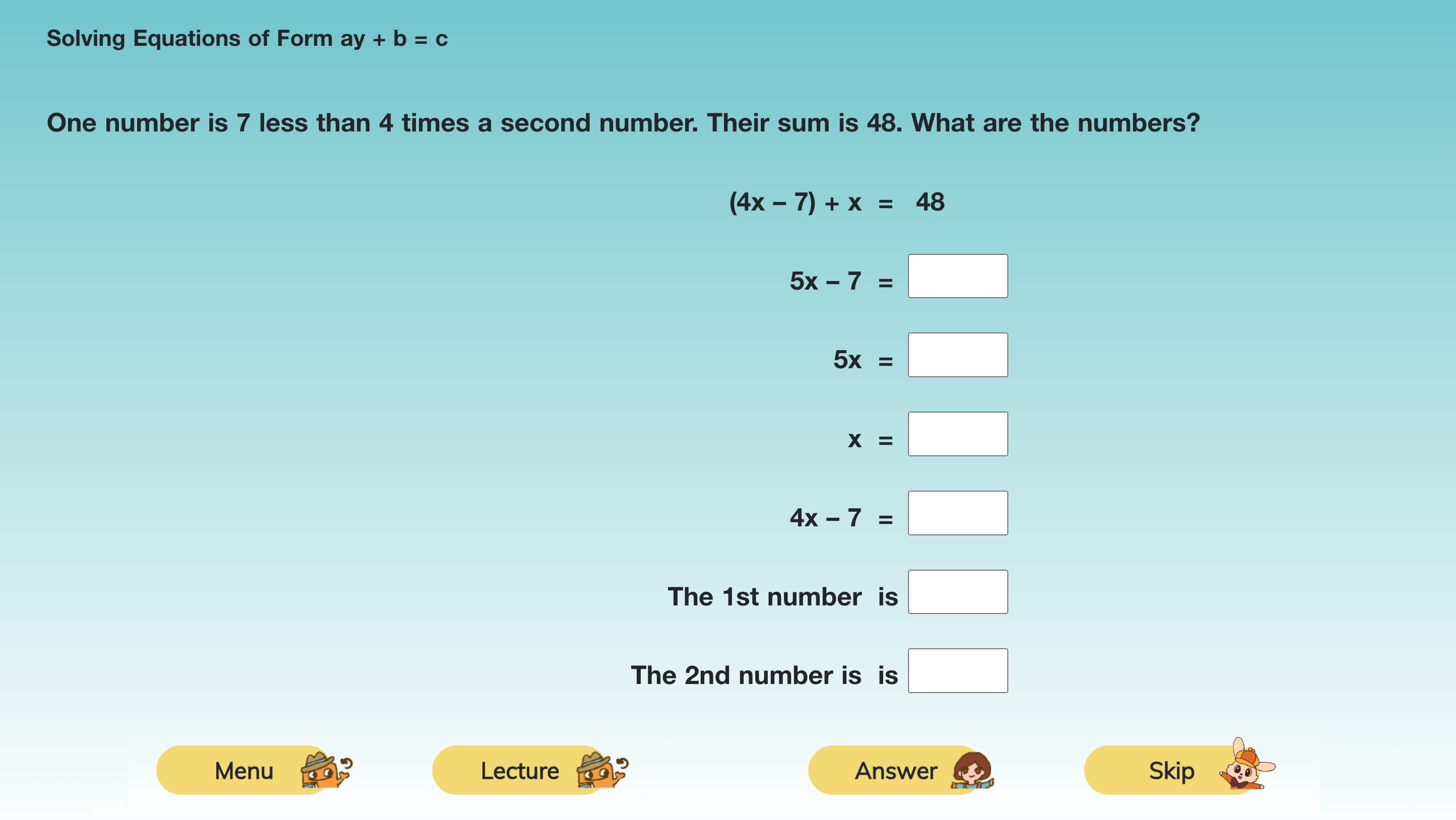 レクチャー後、いくつかの問題を解いていきます。算数コースは豊富な問題数があります。生徒は問題解決の方法と批判的思考を学び、分析し、関連性を持たせるスキルを身につけます。